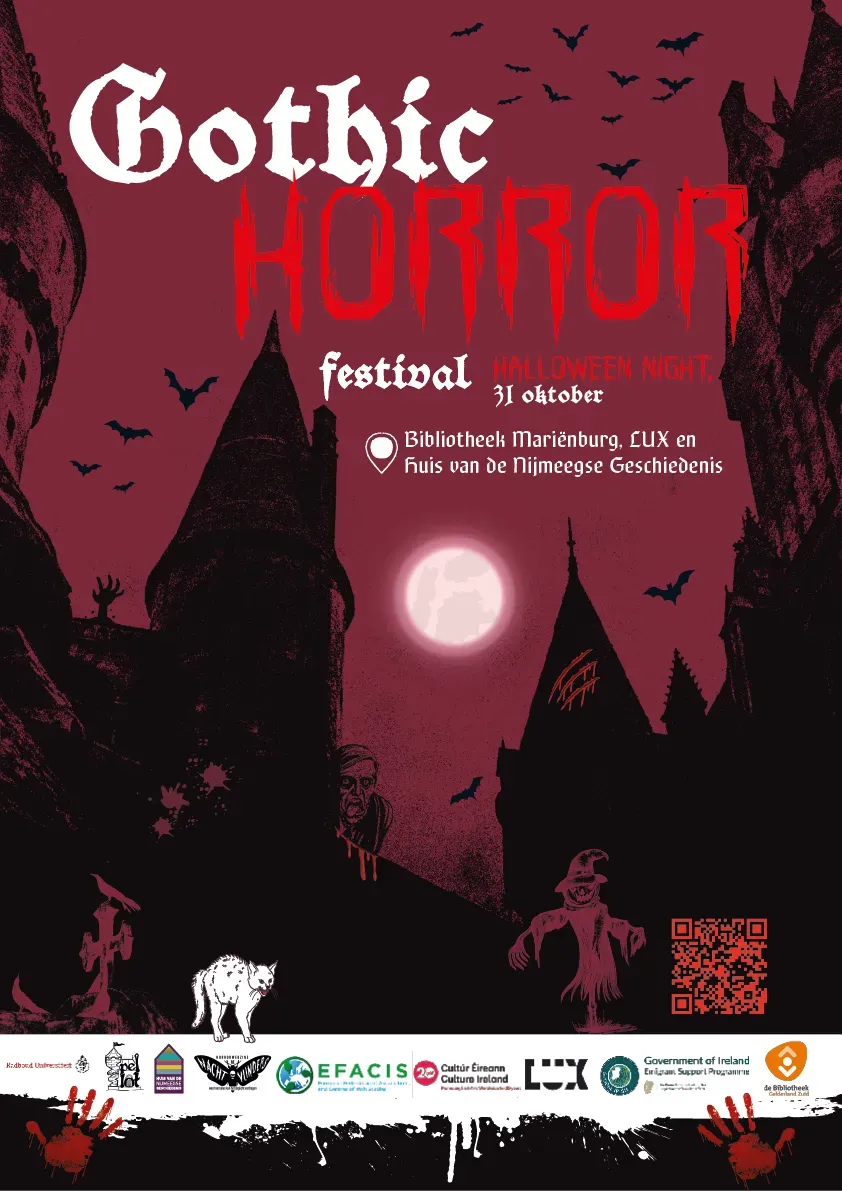 Het Gothic Horror Festival vindt plaats op vrijdag 31 oktober vanaf 19.00 uur in Bibliotheek Mariënburg, LUX en het Huis van de Nijmeegse Geschiedenis. Het programma is voor 18 jaar en ouder. Tickets kosten € 6,- voor studenten, €7,50 voor leden van de bieb en €10,- voor overige bezoekers en zijn hier te bestellen.